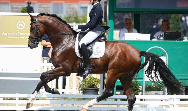 Dressurnachwuchs für den verwöhnten Anspruch, mit ausgesprochen schönen Linien und einem Höchstmaß an Körperharmonie in top-moderner Aufmachung. Franz Joseph Junior war Prämienhengst der Westfalen-Körung 2018, von uns entdeckt auf der westfälischen Elite-Fohlenauktion 2016. Er verfügt über takterhabene Bewegungen, immer groß in Balance, und demonstriert auch Schritt und Galopp von außergewöhnlicher Klasse. Er ist somit klar für das große Viereck prädestiniert.