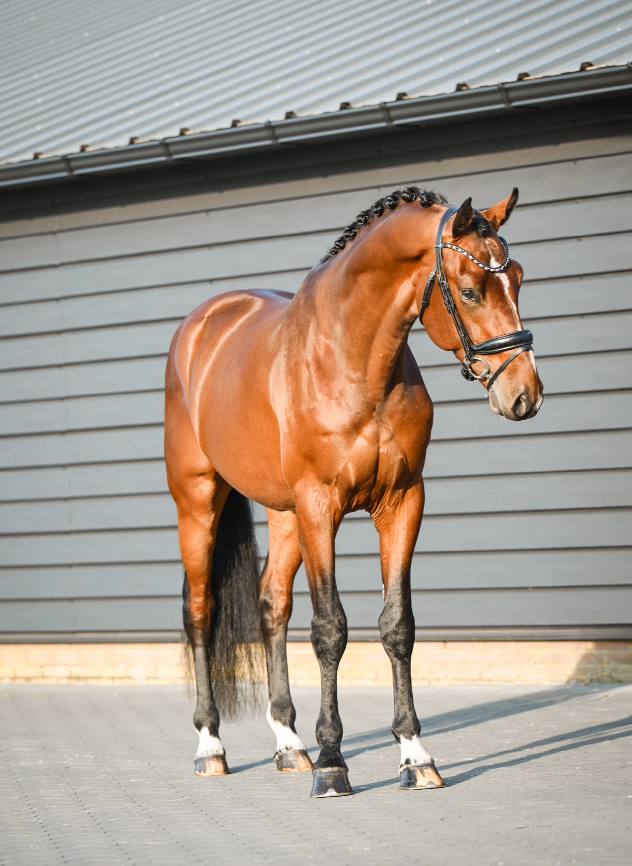 Son of Zalome ist ein vielversprechender dunkelbrauner KWPN-Hengst, geboren 2022, gezüchtet von Frenk Jespers und Kim van der Muren-Hirdes. Er stammt vom Spitzenvererber Vitalis ab. Dieser einflussreiche Hengst brachte viele gekörte Söhne und erfolgreiche Sportpferde hervor. Son of Zalome (1,70 cm) stammt aus der Stute Zalome (1,71 cm) x Aljano x Laurentin I. Die Stute lief unter Kim van der Muren-Hirdes auf PSG/Inter I-Niveau. Die Holsteiner Stute mit den Prädikaten Stb. Verbandspremie wurde im Alter von 17 Jahren vom KWPN zur Elite erklärt und erhielt aufgrund ihrer sportlichen Leistungen auch das Prädikat SPORT. Die Mutter von Zalome namens Oda II brachte auch das Grand-Prix-Pferd Al Martino hervor.